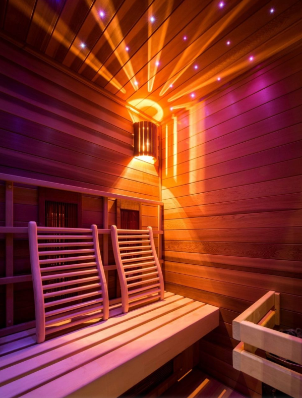 Le sauna prolonge l’expérience, dans une ambiance douce et enveloppante, où les sensations prennent toute leur place.