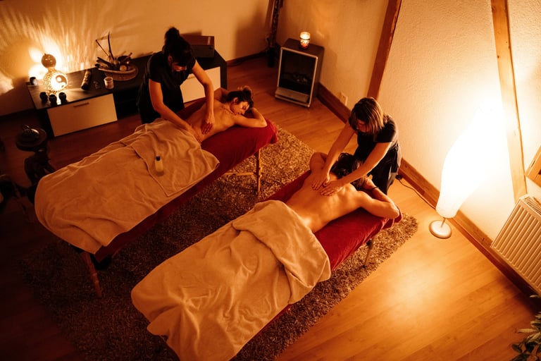 chacun reçoit son massage, côte à côte.